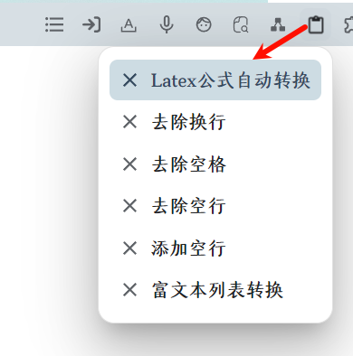 A button is added to SiYuan's top bar where you can enable or disable specific processing features.