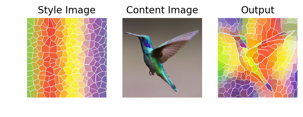 To further illustrate, notice how the bird is visible in the output, but painted very much like the style image?