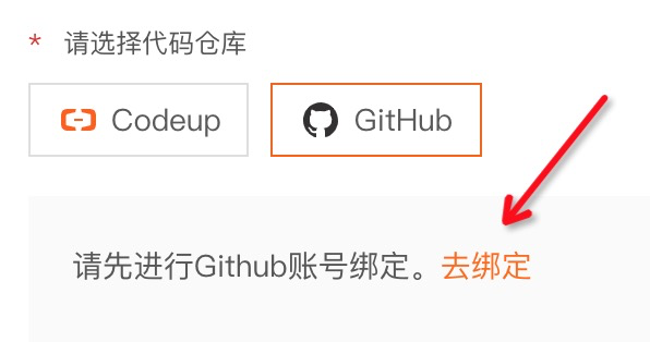 依次点击「应用列表」「前端应用」「新建前端应用」按钮。首先绑定GitHub帐号,允许云开发平台构建、发布你的GitHub代码为可访问的网站。