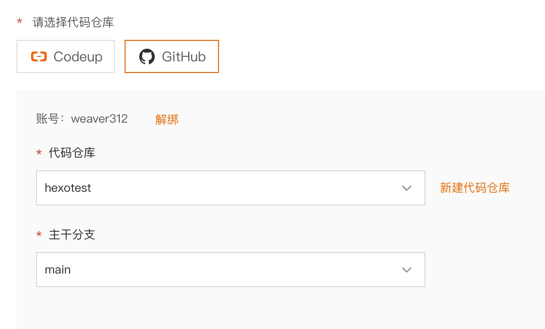 选择第一步中的代码仓库、主干分支等,并点击下一步。主干分支一般指的是代码的master或main等分支。