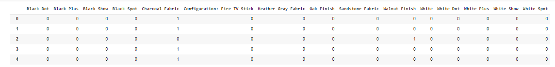 Now we used count vectorizer to convert customer reviews into string data. The following is the result after we used count vectorizer to our data :