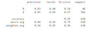 Table above shows that our logistic regression model have F1 Score of 0.94, it means accuracy of our Naive Bayes model is 94%