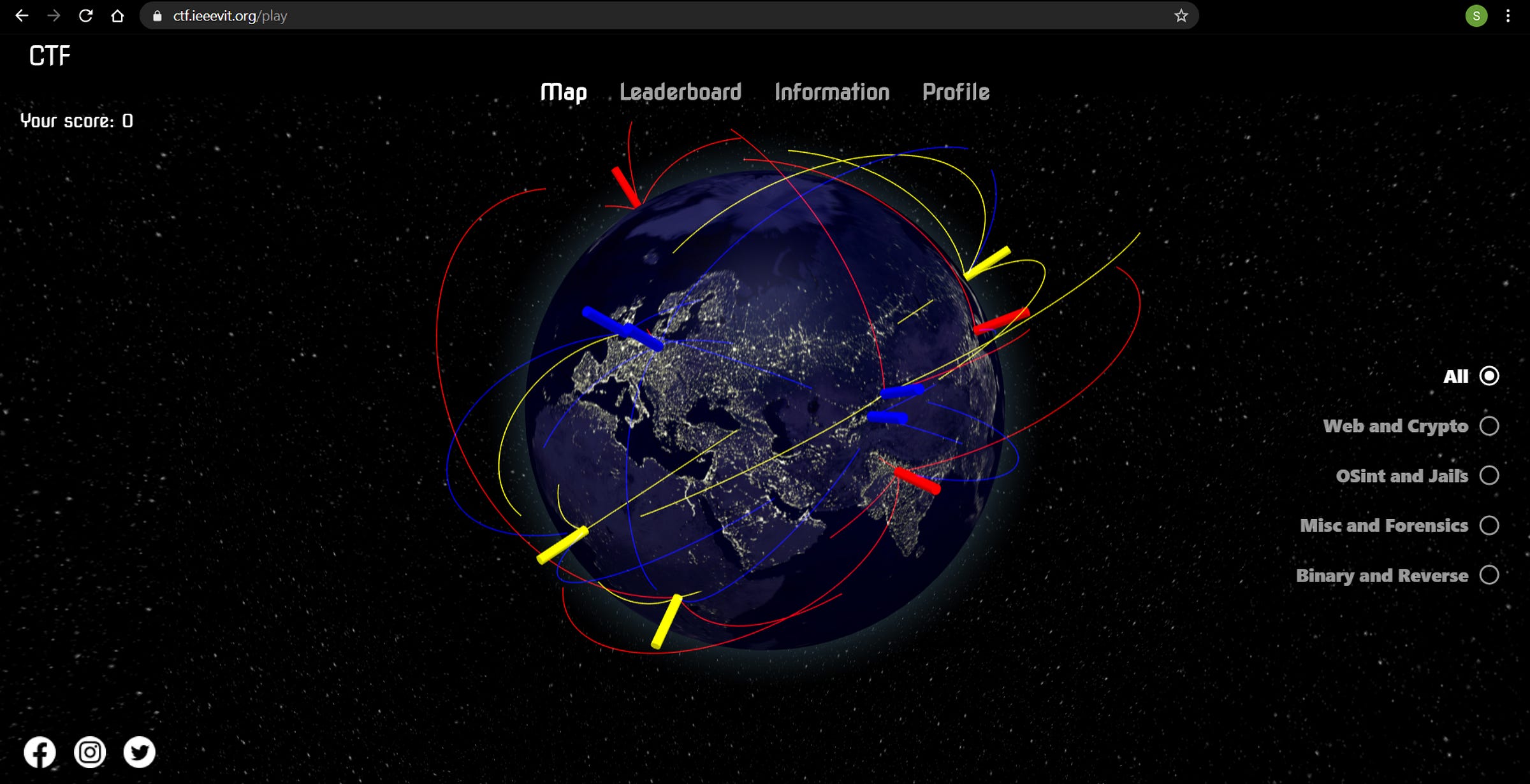 Capture The Flag or CTF is a information security competition which challenges its participants to solve a variety of tasks which may range from decryptions to hacking a server to win this contest. Hence making it a Cyber Security event. IEEE-VIT present you CTF-Conquer The World. This online CTF presents an innovate clean design build with Reactjs library and absolutely mouth dropping questions.
