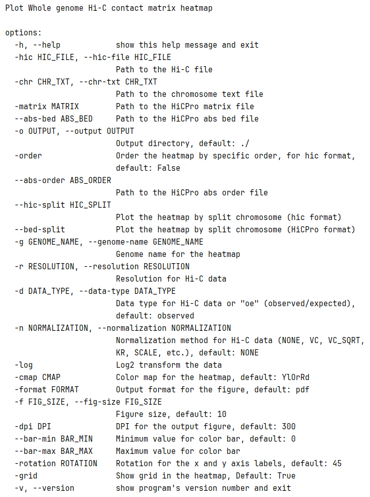 plothic -matrix sample_500000.matrix --abs-bed sample_500000_abs.bed -format png -cmap viridis --bar-max 10000 -g PlotHiC-order --abs-order order.txt
