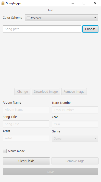 SongTagger SongTagger is an application for tagging audio files. The program can: Read song data Modify song data Remove song tags Change song artwork Remove song artwork Download song artwork image Change program color scheme