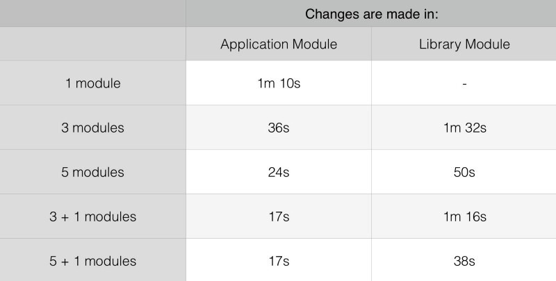 - 멀티 모듈구조의 경우 빌드 속도가 기존 구조에 비해 빌드 속도를 단축시킬 수 있습니다.