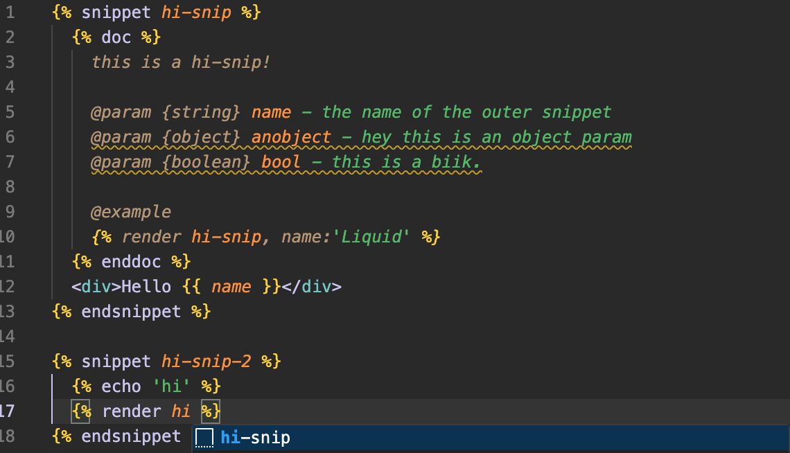 {% render %}tag, the language server will suggest both file-based snippets and inline snippets defined within the same file. Inline snippets are displayed with a helpful documentation note indicating they are "defined in this file".What's next? Any followup issues?