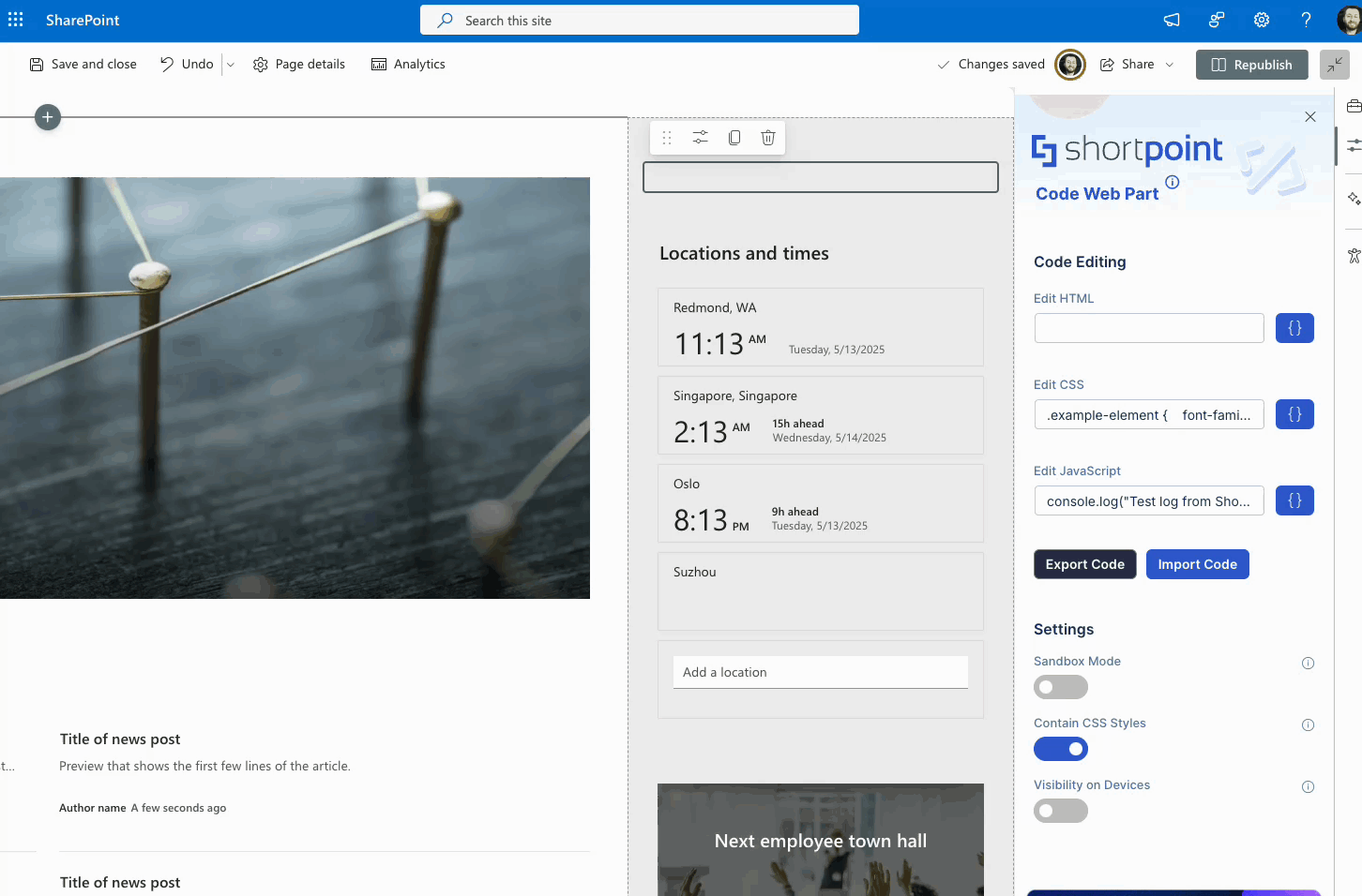 Welcome to the ShortPoint Code Editor WebPart – a powerful, flexible, and community-first solution that empowers you to write and embed custom code (HTML, CSS, and JavaScript) directly into SharePoint pages. Designed with safety, usability, and collaboration in mind, this web part is completely free and open to the SharePoint community.