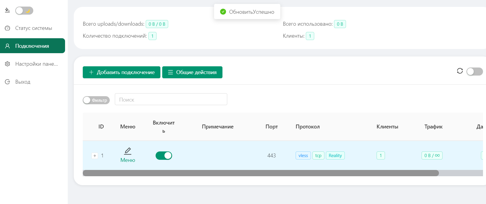 Также сервер спросит хотите ли вы заменить таблицу inbounds (она содержит данные о клиентах и конфигурациях прокси, по умолчанию пустая) - первый запуск скрипта заменяет пустую таблицу, последующий запуск заменит данные на дефолтную конфигурацию с Vless XTLS-Reality, порт 443.