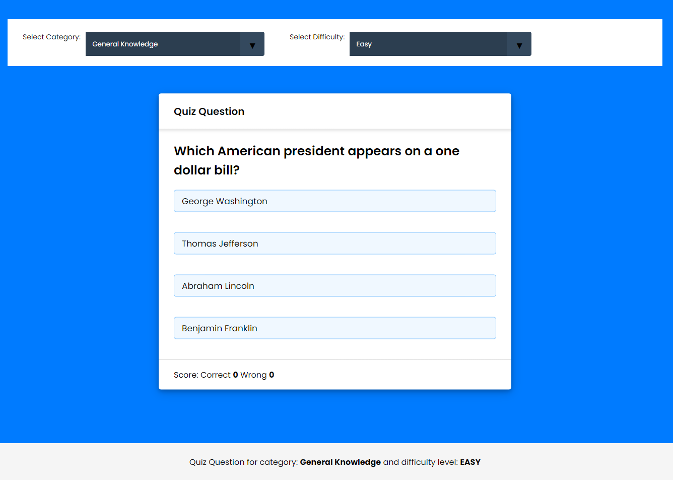 You can find the details about Open Trivia Database in the link: Open Trivia Database