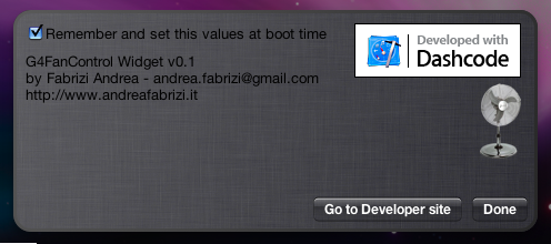 G4FanControl is a software I've developed more or less 10 years ago, when I faced overheating problems with my old PowerBook G4. I sold it for some years and now I decided to make it free and opensource. The code is available on GitHub