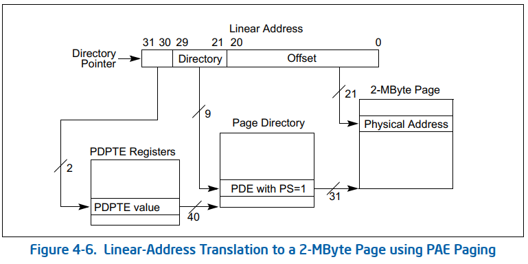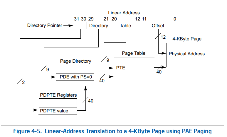 . The translation of a 32-bit linear address then operates as follows:- Bits 31:22 of the linear address select an entry in the guest page directory located at the guest-physical address in CR3. The guest-physical address of the guest page-directory entry (PDE) is translated through EPT to determine the guest PDE’s physical address.