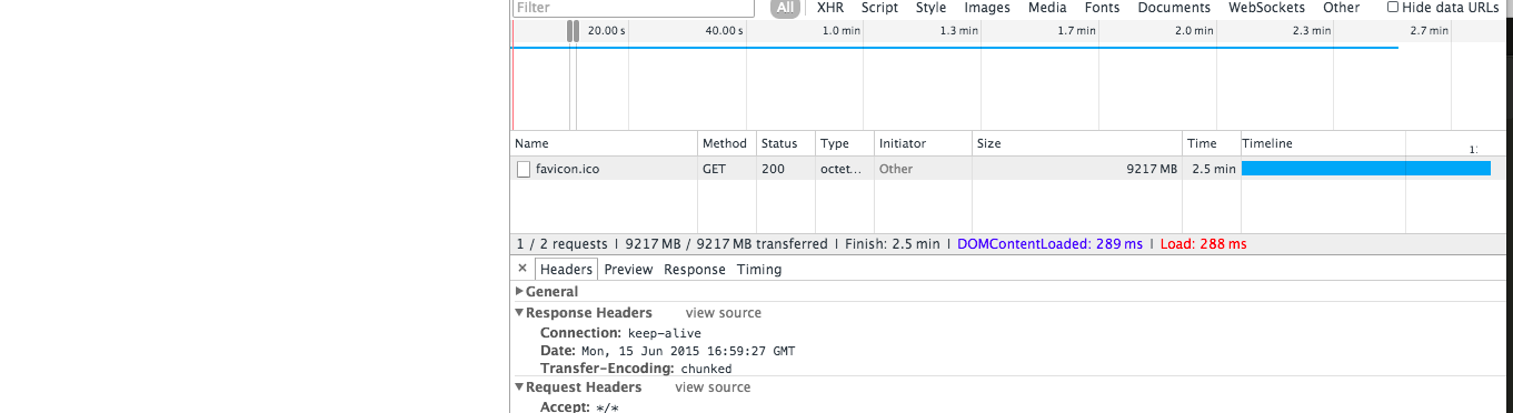 This repository demonstrates that browsers will download huge favicon and touch-icon files to the point that they crash and/or bring the computer to a halt - all in the background with no indication to the user that any form of download or networking is happening.