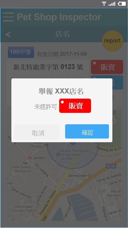 Petshop Checker is an android app that allows users to check the business license when they visiting one. User can also report an illegal petshop to the authority with photos and description. The app is using data from animal protection information website http://animal.coa.gov.tw/html/index_07.aspx which contain details of each petshop business license.