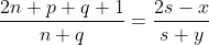 2n + p + q + 1 = 2s - x, n + q = s + y. Eliminating s gives q = p + 1 + x + 2y.