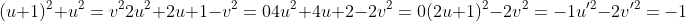(u+1)**2 + u**2 = v**2 -- (1)
