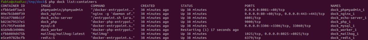 List running containers (php dock list:containers)