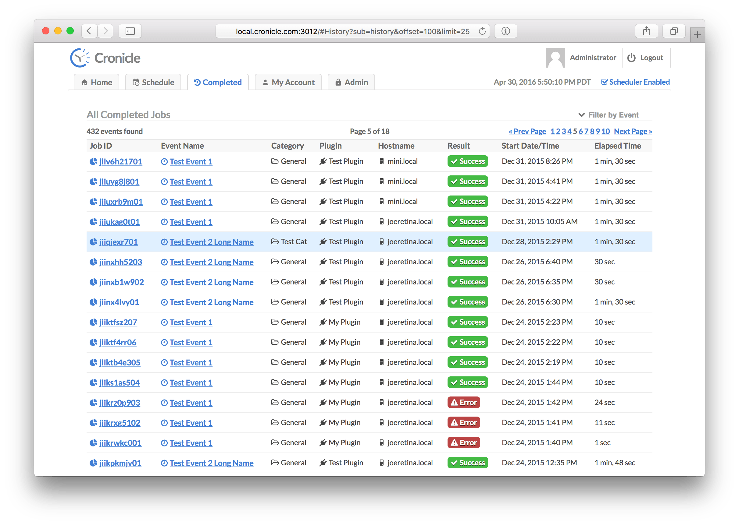 For the client-side, the Cronicle web application is built on the pixl-webapp HTML5/CSS/JavaScript framework: