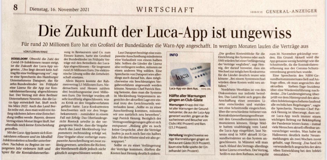 - 17.04. Interview Berliner Zeitung: Gründer der Luca-App im Interview: „Wir erleben eine typisch deutsche Debatte“