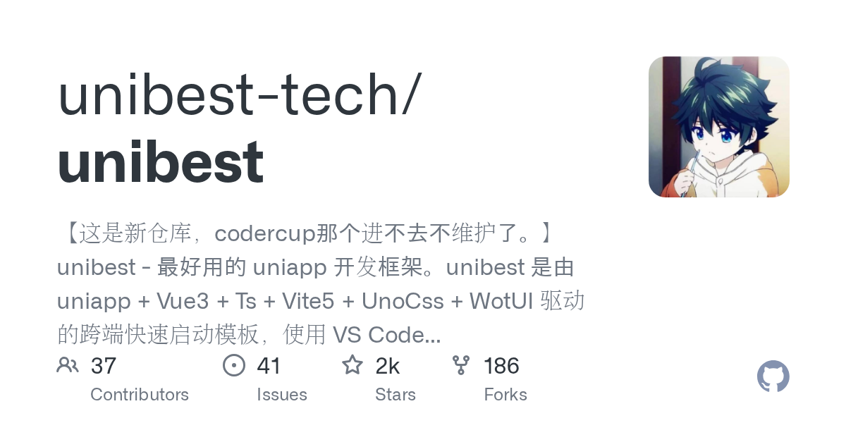 Hi, this is 菲鸽( feige996 ) 👋 codercup 账号因为电脑恢复出厂设置,导致 2fa 验证码和恢复码都丢失,再也无法登录,所以重新创建了这个 feige996 账号,并把一些重要的仓库迁移到这里。 public 的仓库迁移过来了,private 的无法访问迁移不了。 🔖 Tech Stack 我的开源项目: [2个月前 👍:194 ⭐:113] 【2024年5月】unibest 千星,作者被裁,求工作(已找到工作)。 [4个月前 👍:52 ⭐:46] 🎉 号外,unibest 官方文档新增6个新特性 🎉 [4个月前 👍:99 ⭐:57] 揭秘,unibest诞生过程;浅谈,开源真不容易 [4个月前 👍:224 ⭐:322] 🎉 unibest 官方文档出来啦 🎉 [6个月前 👍:588 ⭐:1201] 🔥2024年最好用的 uniapp 开发模板 unibest,近一个月 star 数飙升!🔥 [2个月前 👍:25 ⭐:22] 【2024年5月】nuxt3 项目模板,让你开发官网得心应手(续) [2个月前 👍:15 ⭐:12] 【unibest文档】十、多语言篇 [2个月前 👍:16 ⭐:9] 【unibest文档】九、状态篇 [2个月前 👍:11 ⭐:7] 【unibest文档】八、请求篇 [2个月前 👍:12 ⭐:12] 【unibest文档】七、UI篇