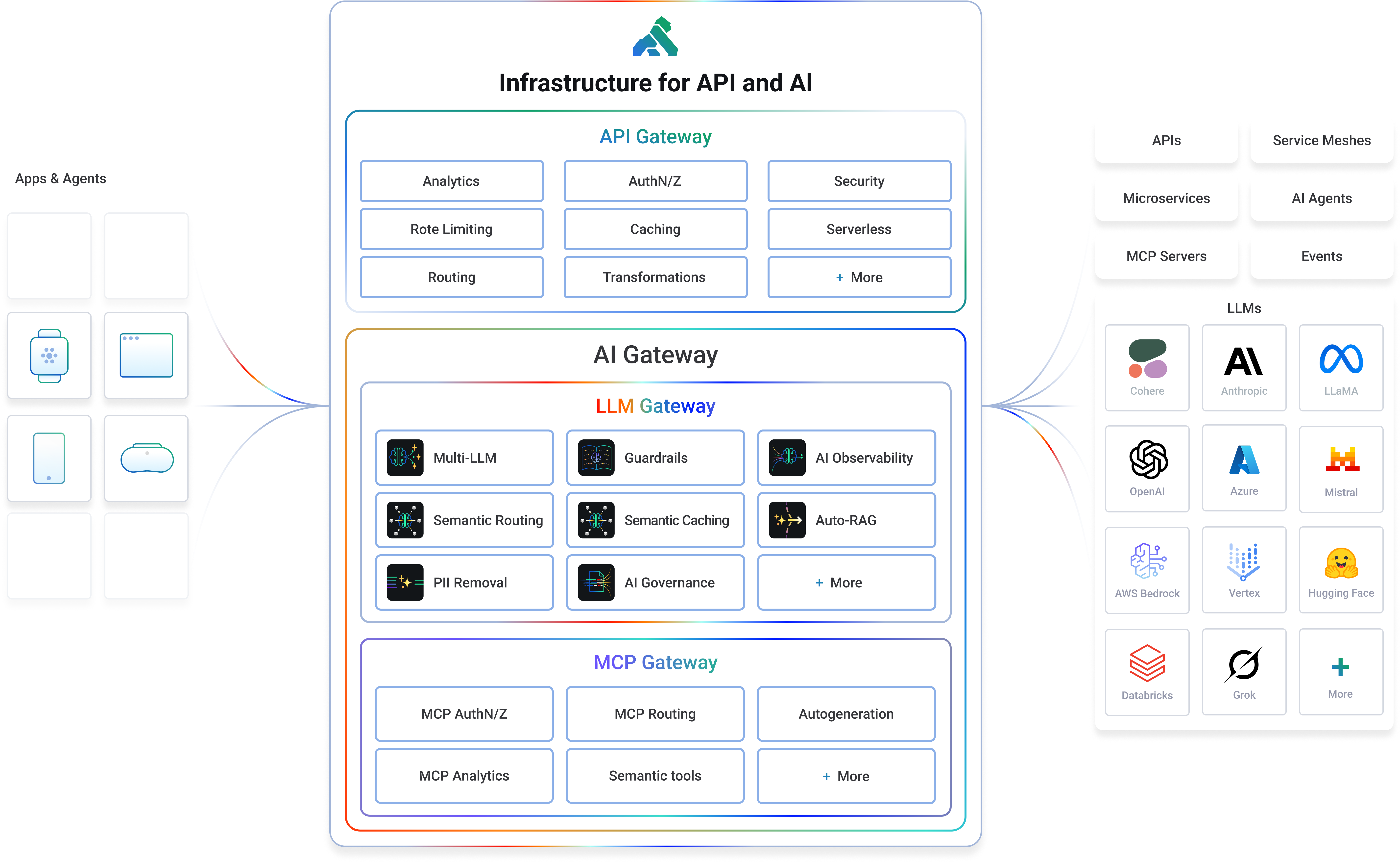 - 60+ AI features like AI observability, semantic security and caching, semantic routing and more.