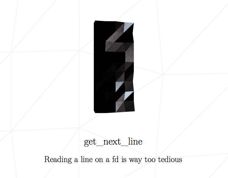 This projects is about creating a function that, allows to read a line ending with a newline character ('\n') from a file descriptor, without knowing its size beforehand. One of the goal of this project is to learn a highly interesting new concept in C programming: static variables, and to gain a deeper understanding of allocations, whether they happen on the stack memory or in the heap memory, the manipulation and the life cycle of a buffer, the unexpected complexity implied in the use of one or many static variables.