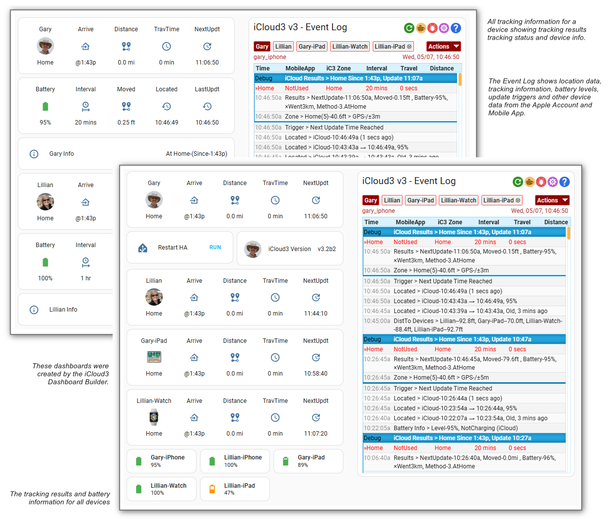 - Dashboard Builder - iCloud3 Dashboards in various formats are added to Home Assistant when the iCloud3 Integration is first installed.