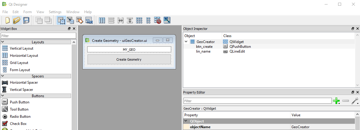 Modify GeoCreator.py, we need to update a path to UI file (don't forget import os module):