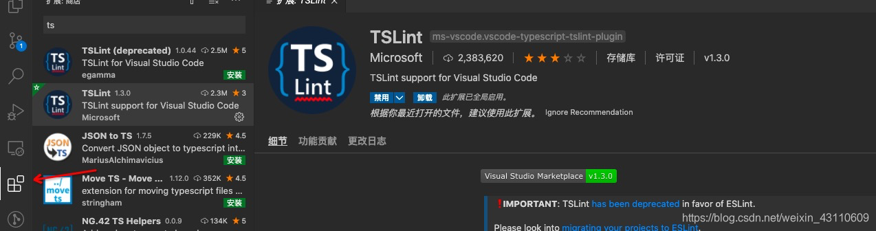 此版本只是针对tslint 对js文件出现警告 一下没有办法处理 本人看着就有点烦 所以就弃用tslint 改用 eslint + prettier 安装的插件有