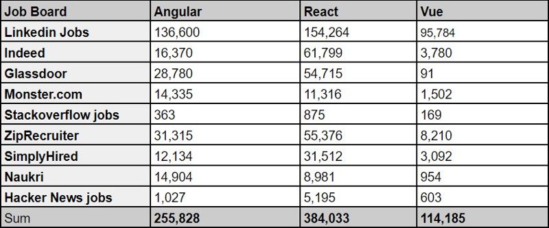 The job market shows what technologies companies are using. Software engineers and engineering managers usually compare frameworks or libraries in order to choose which one(s) suits their needs. They also care about how easy it is to find a developer who is skilled in that particular platform. Therefore, the more popular the framework or library, the more potential it has to be selected.