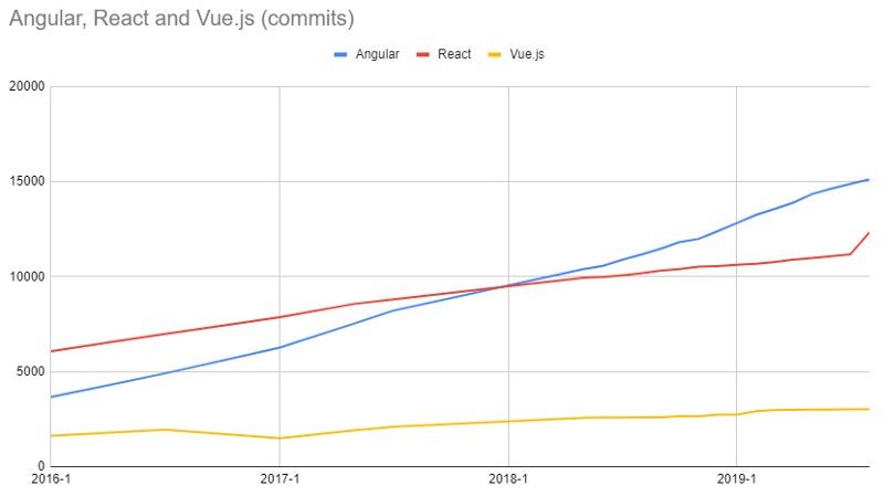 - Angular, React and Vue's GitHub repositories over time