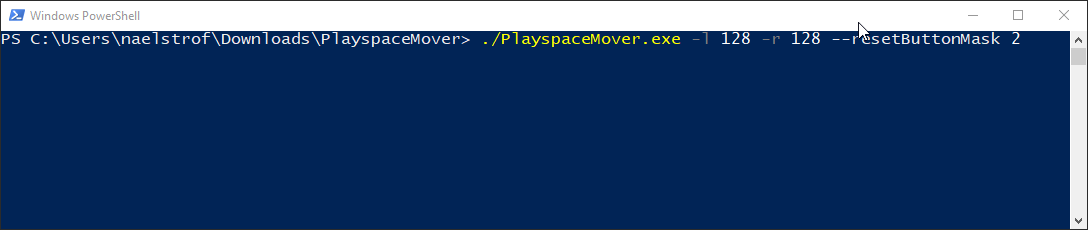 Try ./PlayspaceMover.exe --help for more help on bit-masks and other stuff!