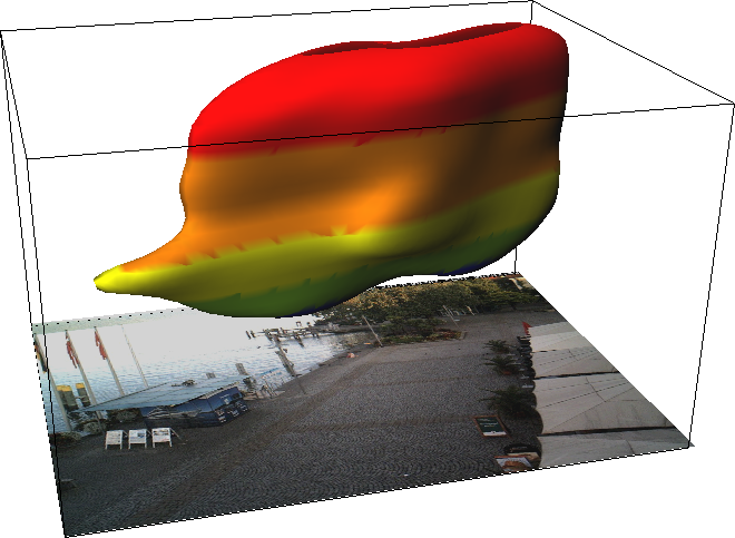 3D kernel density of observations with Z coordinate as time of day (Space-Time Cube), visualized using multiple isosurfaces. All observations are aggregated by the time of day.