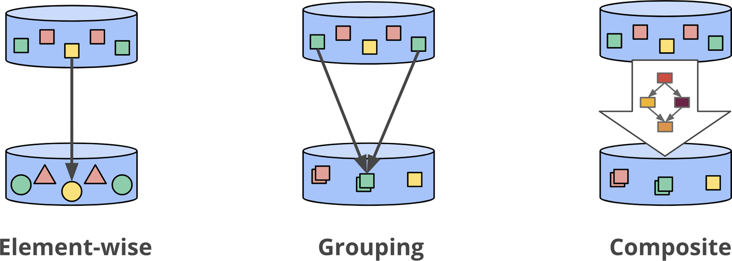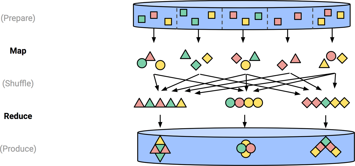 The targeted runner will next set up a cluster of workers and execute some of the transformation steps in parallel in a Map-Shuffle-Reduce style's algorithm.