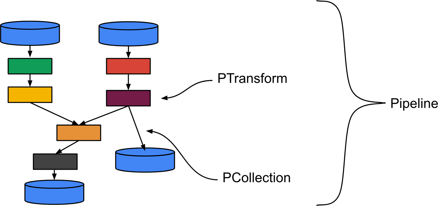 You have to define a Pipeline which is a function that contains several transformation steps. Each step is called a PTransform. A PTransform is a function that takes a PCollection as a main input (and eventually side input PCollections), then compute data and outputs 0, 1 or multiple PCollections. A PTransform can also be a composite transform which is a combination of multiple transformation steps. That's useful to write high level transformation steps and to structure your code to improve resuability and readability.