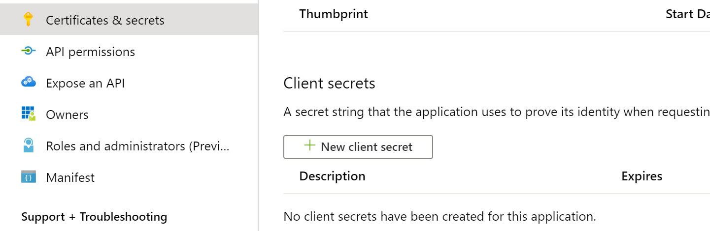 Client Secret:- If you would like to use client credential grant or Server-2-Server authentication instead of the authorization code grant mentioned above, specify the client secret. You can generate one for your application under Certificates & secrets