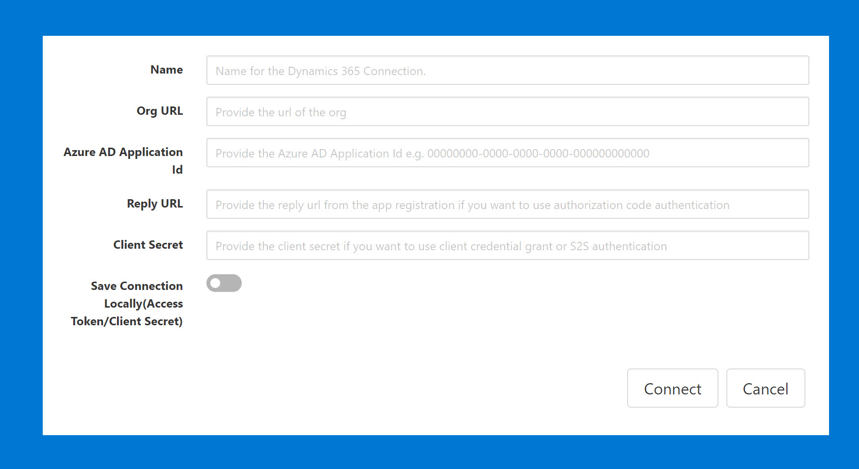 Org URL:- The url of the Dynamics 365 org you would like to connect.