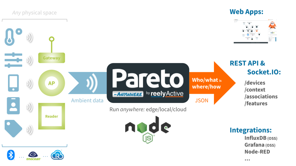 pareto-anywhere is a convenient collection of complementary open source software modules by reelyActive which, together, collect ambient IoT data from common sources and process it into a standard JSON format that you can readily put to good use via APIs, web apps and familiar integrations.