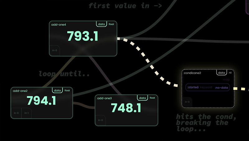:cond {:odd? #(odd? %) ;; 2 bool conditional dyn outs with no "real" output flow below