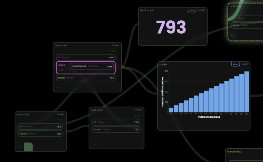 :adder {:fn + ;; notice that adder has no "traditional" connections, just a bool set of condis