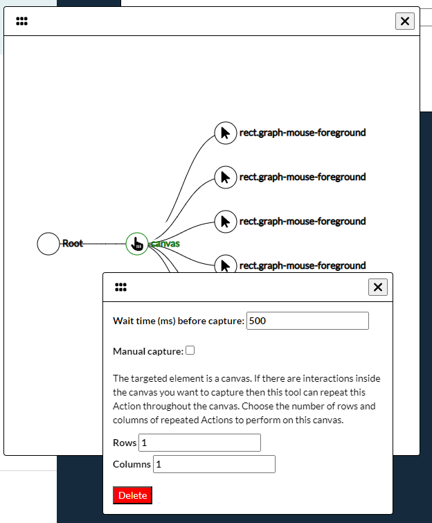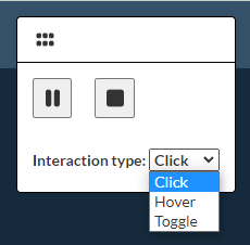 Clicking the left (start) button will allow you to start specifying the interactions you wish to capture. Clicking the right (stop) button will end this process and allow you to begin capturing the visualization.