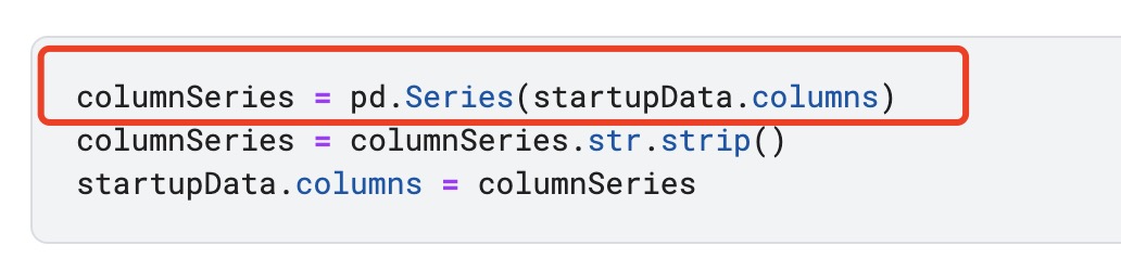 In Section 1: Indexing Tabular Data, why we need to transform startupData.columns to pandas Series format, can we use startupData.columns.str.strip() directly to remove the whitespace? Thanks.
