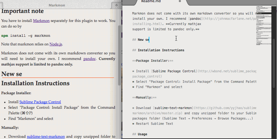- Download sublime-text-markmon and copy unzipped folder to your Sublime Text packages folder (Sublime Text → Preferences → Browse Packages...)