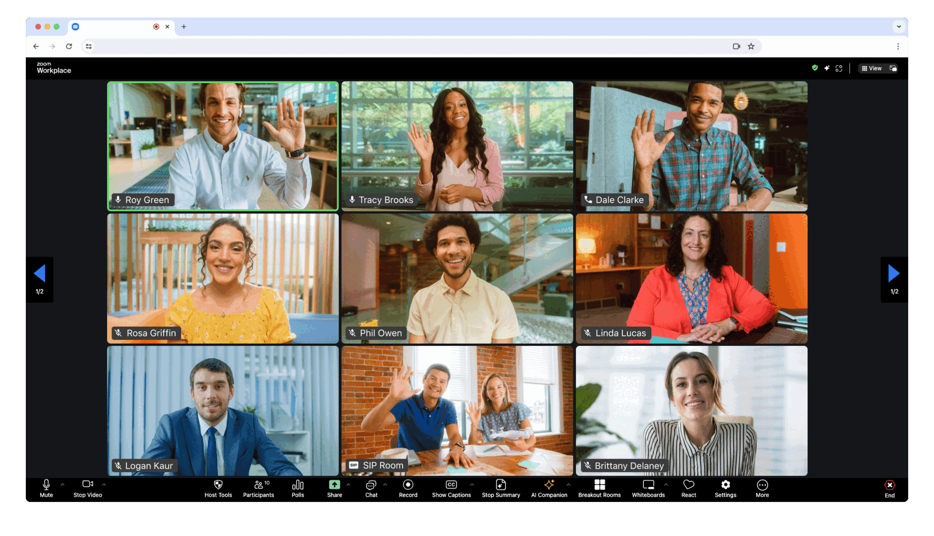Full-page meeting experience - Displays the Meeting SDK as a complete interface, providing the same experience as the Zoom Web Client within your web page.